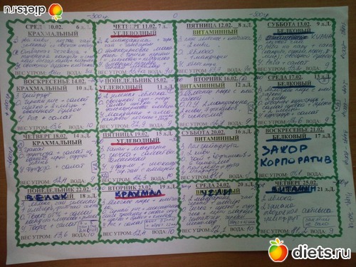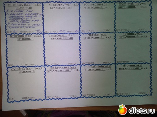 Я веду свою табличку с диетой. Вот один листик уже закончила.