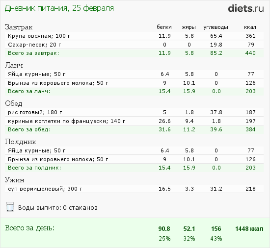 Это эндокринолог мне такие указания оставила. По списку продуктов, которые она мне разрешила, на большее и не наешь. (там только зеленые овощи, белое мясо и обезжиренная молочка, все остальное либо ограничено, либо запрещено)