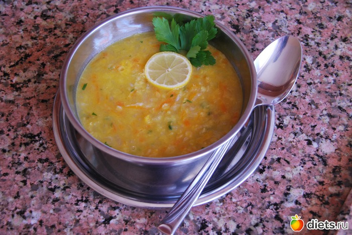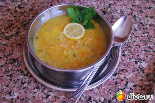 Обед:похлёбка из чечевицы, на вид она не очень сексуальная но на вкус