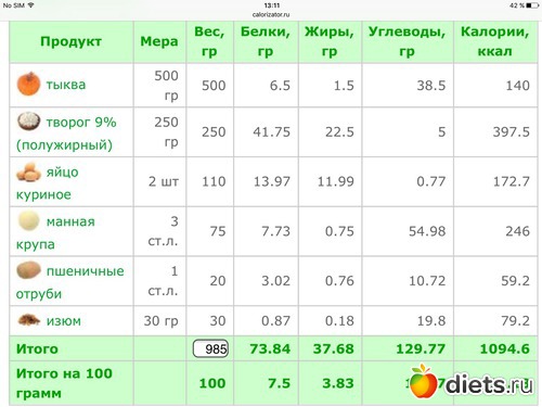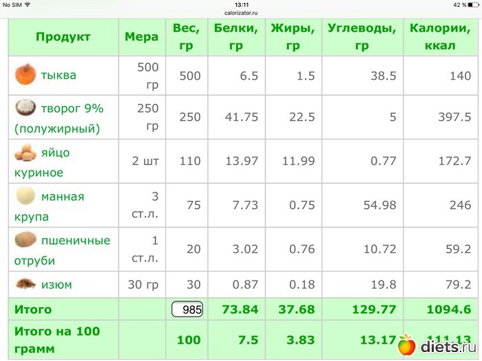 Калорийность продуктов