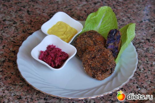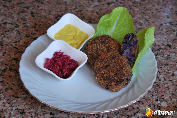 и специи.Получилась довольно густая масса.Оладушки лепила руками,обваляла в отурбях и