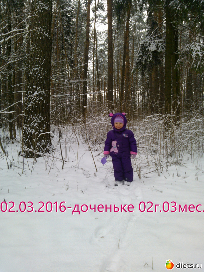 ! Целое утро с доченькой провели в лесу. Безумно хорошая погода! Безветрено, тихо,-1°, за ночь выпал снежок, изредка (но уже)слышно пение лесных птиц и на душе радость! Сегодня моей доченьке 2 годика и 3 месяца