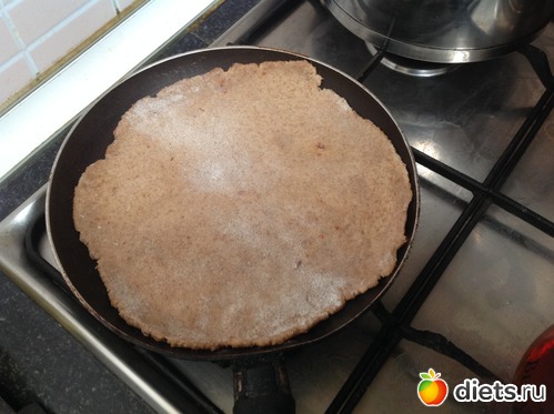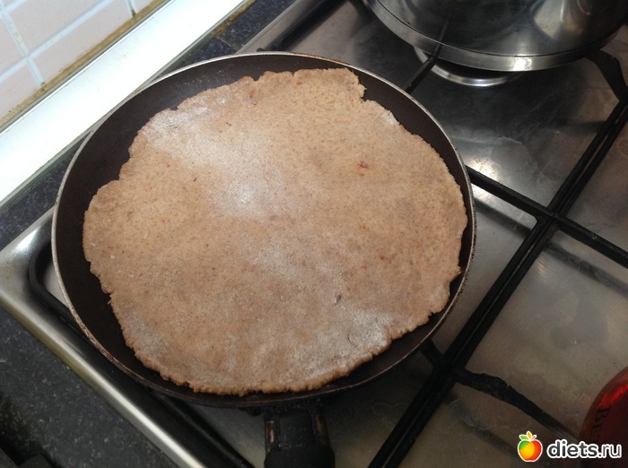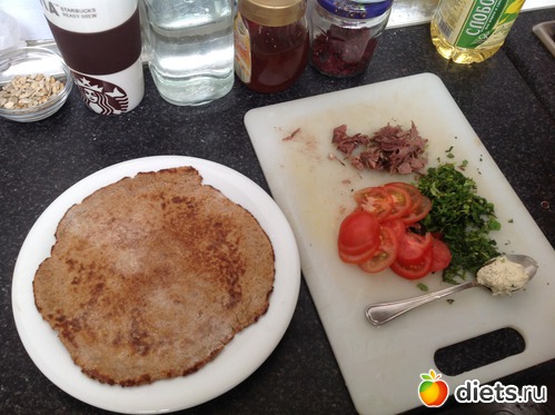 Беру стакан мацони , выливаю в ёмкость . Туда же пол чайной ложечки соды . Потом кладу 5 ст ложек отрубей +5 ст ложек гречневой муки(я перемалываю в кофемолке), гречневой крупы можно побольше , я в последнее время больше 5 ложек кладу ...+5 ст ложек белой муки . Туда же любые специи(соль, перец красный, чеснок (у меня в виде порошка сухого))... Замешиваю тесто , немного прилипает к рукам , как вымесили туда же ст ложку подсолнечного масла и домешиваете. Потом делаю вот такую колбаску как на фото первом и в кулёчек на ночь . Утром отрезаю от теста кусочек размером с яичко . На стол немног муки и раскатываю небольшую лепешку . Раскатываем осторожно , потому что клейковины мало и на сухую сковородку где то1-1,5 минутки .. И вуаля лепешечка готова . А начинка может быть любая .