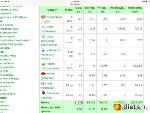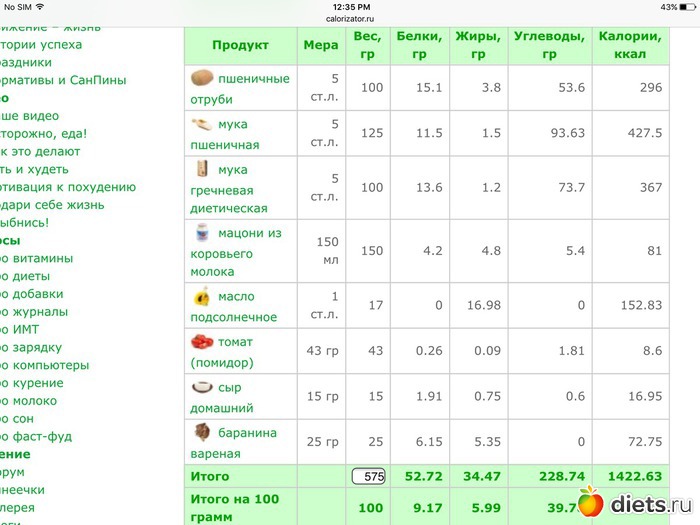 Калорийность продуктов