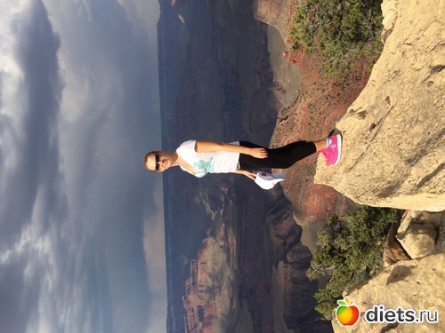 даже если вес не идёт вниз, я все равно довольна, хотя бы не вырос. Вес мой сейчас в районе 60 кг, давно не взвешивалась. В целом я довольна своей фигурой, хоть и считаю, что нет предела совершенству. Занимаюсь спортом, насколько это позволяет моё расписание. Долго искала фото себя в полный рост. На телефоне таких мало. Но нашла вот это. На фоне величественных красот Гранд Каньона.