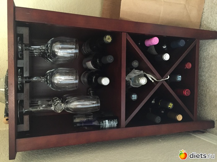Что ещё могу рассказать о себе... Люблю готовить, до 22 лет ничего не могла сделать, а потом потихоньку сама научилась, спасибо ютубу и поварёнку. Люблю морепродукты, зелень. Принципиально не занимаюсь выпечкой. Люблю вино, пытаюсь его изучать и в нем немного разбираться, у меня даже есть вот такая очаровательная тумбочка для хранения вина. Надеюсь, когда нибудь она вырастет до размеров погребка