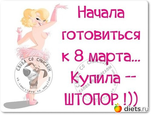 Девочки, всех поздравляю с наступающим праздником!! Думаю, не получиться писать в эти дни, поэтому всем желаю крепкого здоровья, неувядающей красоты, женского счастья и ЛЮБВИ!!! Желаю отдохнуть и повеселиться!!! Но без фанатизма!!! А 9 марта уже будем устраивать разбор полетов!!!