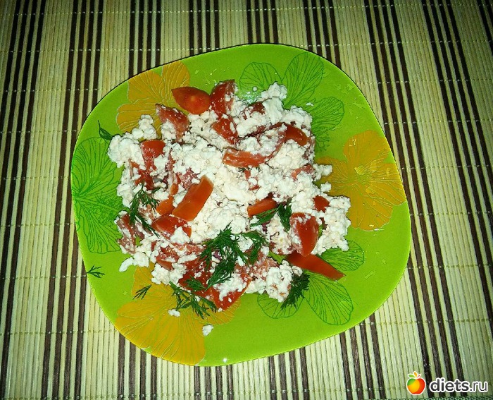 P.S. На дневные перекусы еще вот как люблю делать для разнообразия: творог беру пастообразный, хотя на салатик покрупнее мне больше нравится. Помидор мелко режу, смешиваю с творогом, чеснок, зелень по вкусу. И все это на цельнозерновой хлебец)) Хотя и салат можно вприкуску с хлебцом.