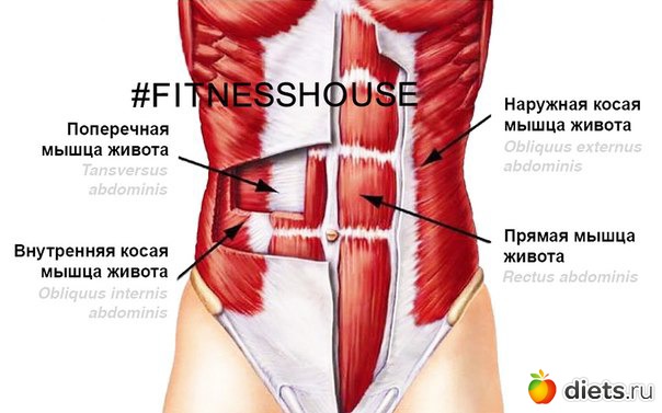 Все закричат - пресс надо качать! Надо, безусловно. Но во-первых, мне нельзя делать обычные упражнения на пресс из-за диастаза (который тоже вносит свою лепту в вид живота). А во-вторых, даже супер-закачанные прямые продольные мышцы пресса с кубиками - далеко не гарантия плоского живота. Красоту и плоскоту наводят внутренние поперечные мышцы. Вон они, на картинке: