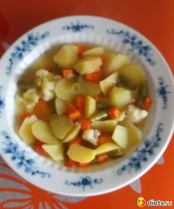 О - картофель с овощами в горшочке и салат( сальца пару кусочков съела ) и 0,5 литра сухого вина приговорили с подругой