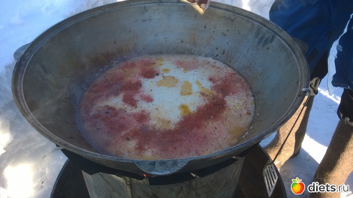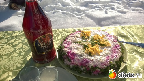 Была шуба, жарили шашлык, сделали огромный казан плова, тортики, вино и что покрепче...