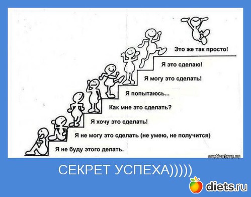 Конечные результаты диеты - это преодоление и проживание всех психологических ям, нахождение в себе сил преодолеть сопротивление нашей психики и у каждого методы свои, кто то ужесточается и ненавидит себя, взращивая в себе чувство вины, а кто то позволяет съесть себе лишний эндорфин ( гормон счастья) в виде ломтика шоколада.