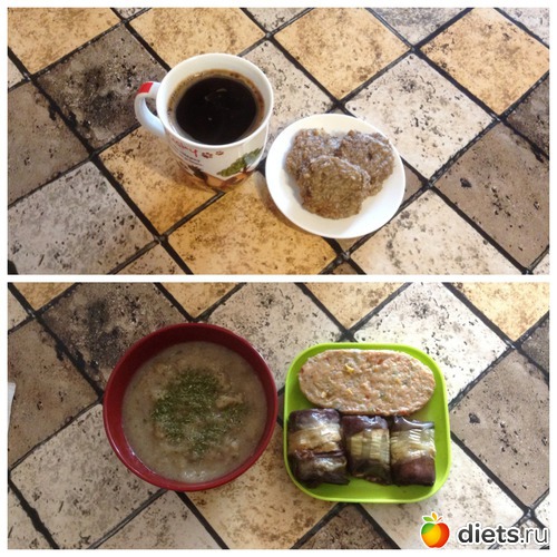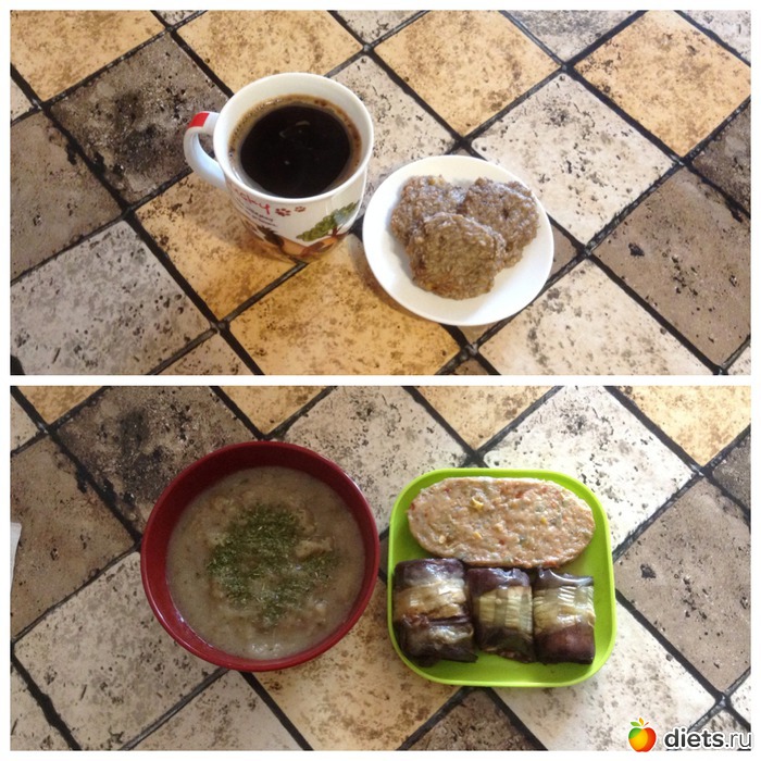 О: овощнодраник, баклажанные рулетики, капустное пюре, был еще кусочек хлеба