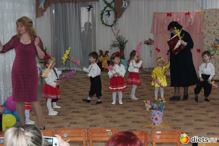 Утренник опять получился изумительным, коллектив садика так постарался, я просто балдю! Танцы, стихи, песни, еще и по мини вафельному тортику деткам досталось, а для мам вырастили траву в стаканчиках и свернули бумажные цветы (это с детками все в тайне делали)