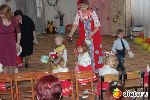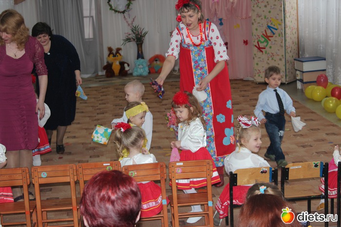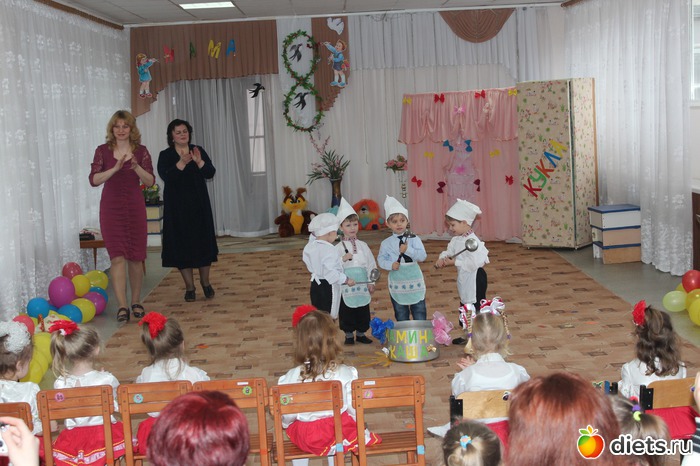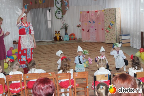 у нас, до праздника рассказывала, что поют, кто что делает. а за день до начала, спрашиваю свою. Спой песенку какую выучили для бабушек. она к уху прислоняется и говори: "Секрет МАМА! "