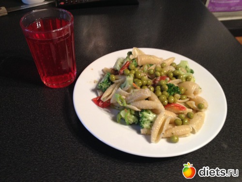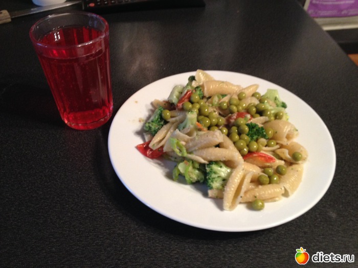 Обед. Паста с овощами под арахисовым песто.