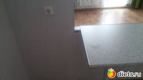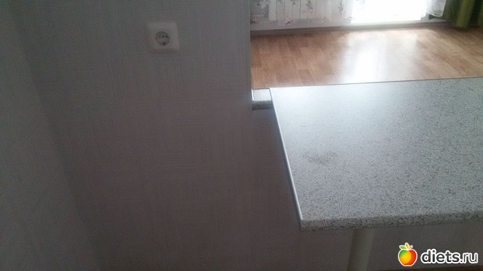 Вот так в результате выглядит столешница, с выпилом для открытия дверки холодильника.