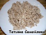 Куриную грудку отвариваем и мелко режем.