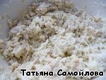 Лук мелко режем. Все смешиваем, добавив майонез.