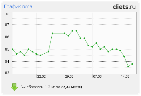 привесом +200гр., итого вес 83,8кг, с начала похудения 5,2кг. Чувствую, что мой метаболизм замедлится еще больше, с режимом питания 1раз в день. Чтобы достигнуть результата в 80 кг к 1апреля, нужно скидывать ежедневно по 271гр, в течении 15дней(считая сегодняшний день)