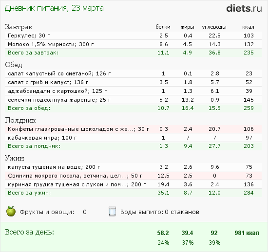 Ну ничего с сегодняшнего дня снова попытаюсь удержаться в рамках и пить побольше воды вместо еды.Просто у меня сейчас трудный момент на работе, последняя неделя отчета и вот нервничаю сильно и кушаю