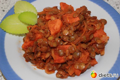 А я обычно просто обжаривают лук с морковью и перемешиваю с отваренной чечевицей))