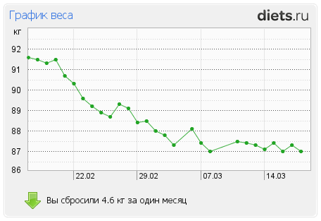 Всем привет! Худею с 22 января, результат хороший - 10,7кг...но 7 марта веса увидели 87 кг - и сегодня уже 18 - и все те же 87 кг... Каждый день то -200, то +200, -300, +300. Определенной диеты не придерживаюсь, на ПП - стараюсь кушать белковую пищу, овощи, немного фруктов. За весь период не позволяла ни кусочка хлеба, ни сладкого... Кушаю так, как и в начале диеты.. Через пару дней должны быть КД, обычно за три дня до них стою на месте...