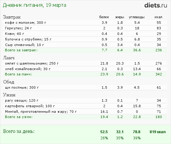 Девочки посмотрите пожалуйста кому не сложно правильно я составила питание? или что то надо убрать ? Немного больше чем 5 ложек получается , На завтрак съела 4 ложки каши с киви ,больше не влезло и у мужа еще 2 ложки омлета схомячила - остальной омлет доедала на ланч.Потом обед был в 2 в 5 есть не хотела а в 6 съела рагу 3 ложки и картошку одну вареную и пришлось добавку докладывать прям жор напал! наложила 2 ложки пюре и кусочек рыбы вроде наелась и скажите пожалуйста 5 раз кушать это не много? Я просто встаю в 5-6 утра получается 5 кушаний до 6 вечера