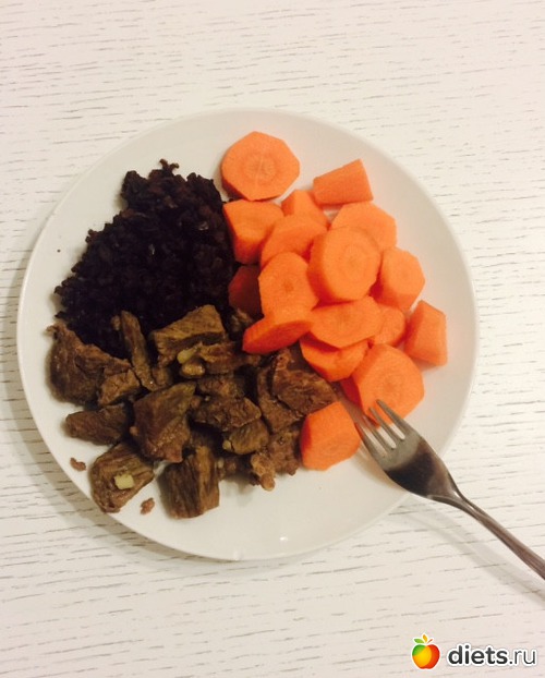 Ужин: черный рис, говядина тушеная, свежая морковь... Читать полностью