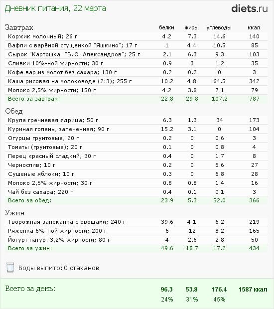 Калорийность продуктов
