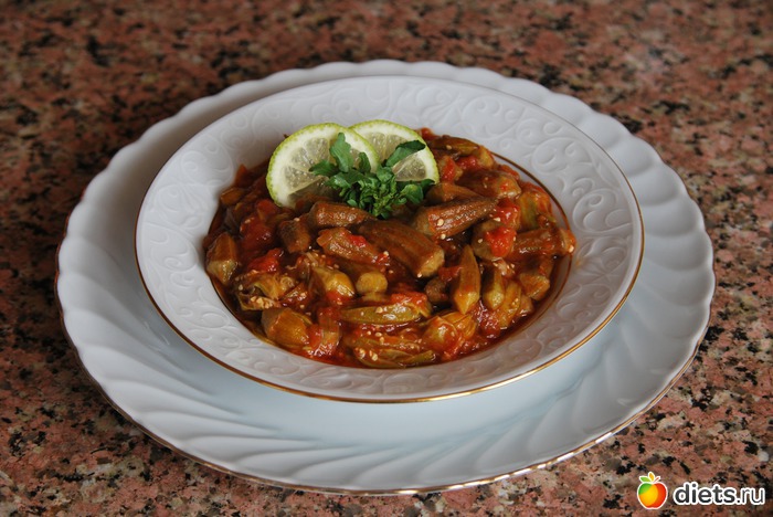 Тушеное что то - это бамия,овощ такой.Погугли,найдешь.