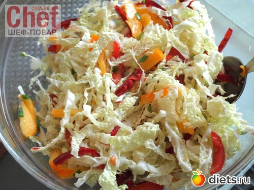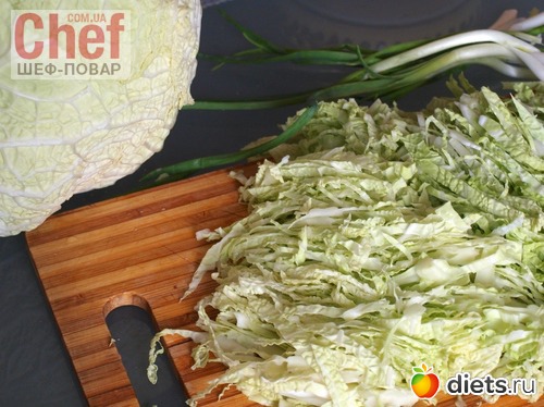 Тонко нашинковать капусту.