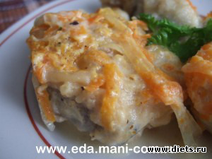 Заливаем молоком (можно майонез со сметаной), солим, перчим.