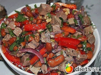 200-250 грамм отварной говядины (берем нежирный кусочек весом грамм 300, отвариваем в подсоленной воде час-полтора),