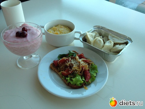 Завтракали в гипермаркете. Последнее время наловчились брать одну порцию на двоих. И попробовать можно больше, и 1/2 порции абсолютно хватает для сытости, и экономия