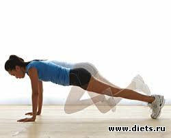 1. Классическая планка на прямых руках. Это та самая поза, с которой вы начинаете отжиматься от пола, только отжиматься вам не придется. Нужно опереться руками в пол, примерно на ширине плеч, а ноги держите вместе. Главное требование – ваш корпус должен создавать собой прямую линию. Не нужно задирать ягодицы вверх или проседать тазом вниз. Застыньте в таком положении и если вы только начинаете тренироваться, то уже через несколько секунд почувствуете, что это не так просто. Тренированные люди могут стоять в классической планке по несколько минут. Для новичка даже 10-30 секунд будут очень полезны на первоначальных этапах тренировок.