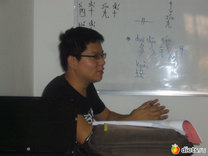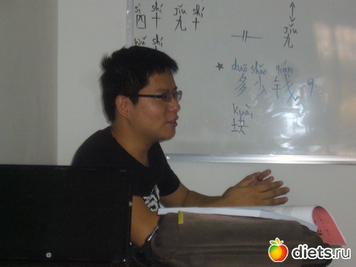 А как ваши уроки китайского? На каком языке преподаватель объясняет?