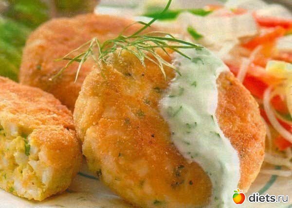 Для рыбных диетических котлет лучше всего подойдет филе морской рыбы средней жирности, например, тилапии. Приготовьте фарш, добавьте 1 белок и 1 яйцо целиком и немного кукурузной муки. В принципе, последнюю можно заменить манкой, но тогда гликемический индекс котлет будет выше. Вымесите фарш, приправьте рубленым укропом или его семенами. Готовьте в пароварке, ешьте с лимонным или лаймовым соком. К рыбным котлетам подойдет и запеченная без жира картошка или отварной коричневый рис.