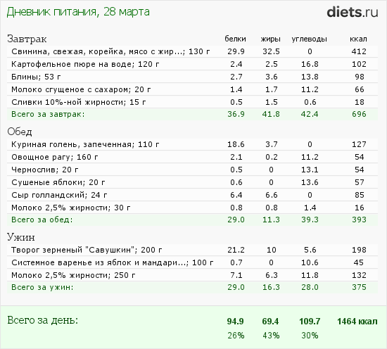 Калорийность продуктов