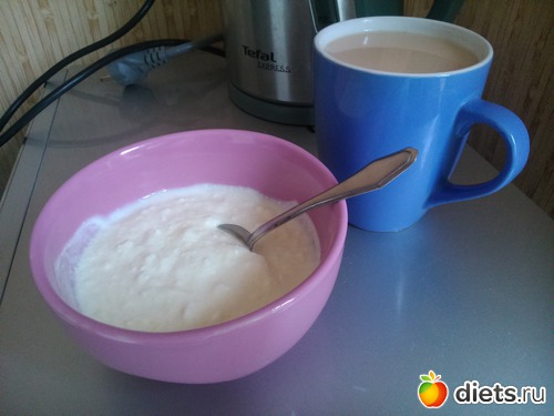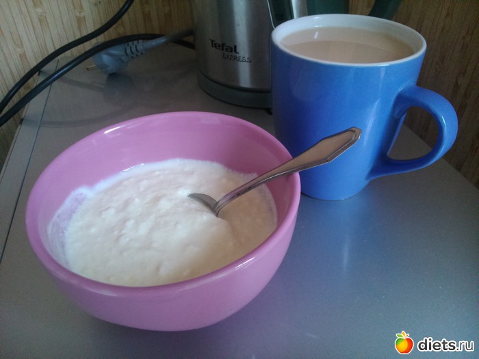 Перекус - творог с натуральным йогуртом, чай с молоком без сахара..