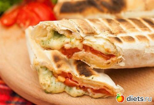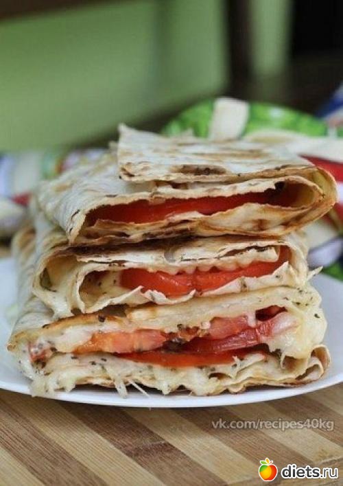 Лаваш с помидорами и сыром.