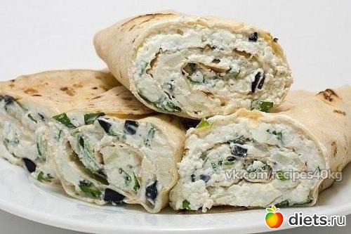 Рулет из лаваша с творогом.