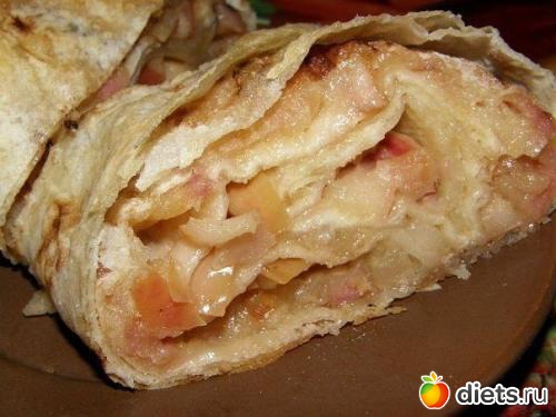 Лаваш с яблоком и творогом.