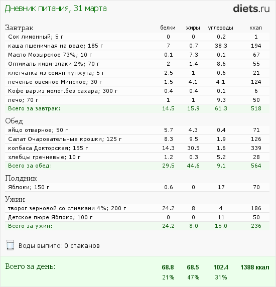 Завтрак (9:30): ячневая каша на воде с молоком, шоколадная колбаса, зефир, йогурт Даниссимо, кофе с молоком.