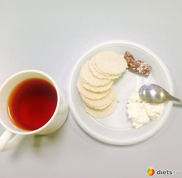Ланч: чай липовый, ржано-отрубные хлебцы, рикотта, кусочек горькой шоколадки с кокосом (Veganfood). Еще было яблочко, но оно осталось без фотосессии...