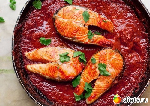 В огнеупорную посуду укладываем горбушу и сверху заливаем соусом.