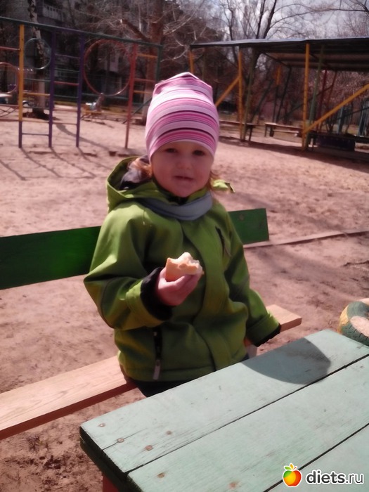 Ну и уже сегодня после садика гуляли по территории садика и тут "мама я хочу хлебушка" и так жалоообно жалооообно...после обеда (борщ, плов и компот и всего по 2 порции) прошло ну от силы 30 минут