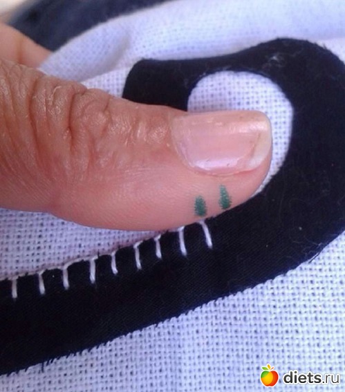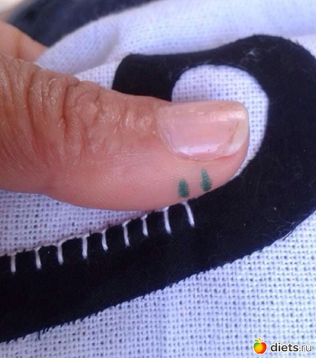 1. Теперь расстояние между стежками будет идеально ровненьким! Достаточно всего лишь сделать памятную отметку на пальце.