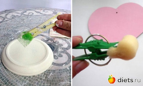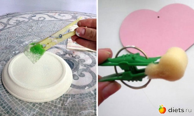 4. Кусочек поролона и прищепка превращаются в очень удобную компактную кисточку!