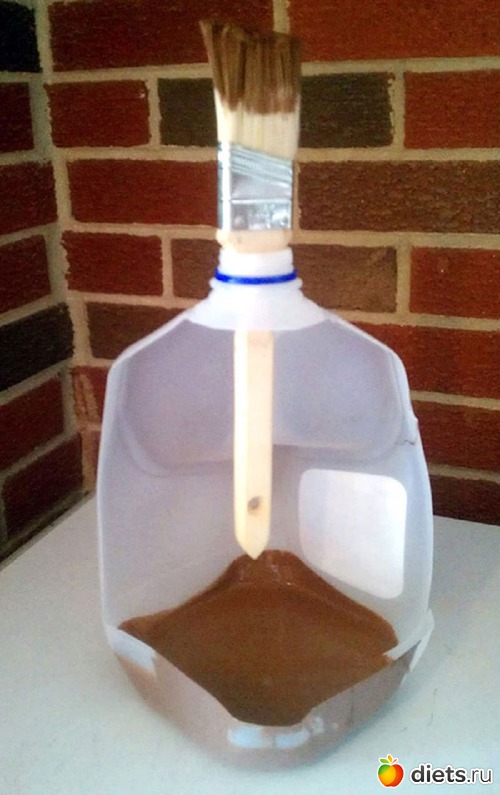 7. Из пластиковой бутылки можно соорудить ёмкость для краски и удобный держатель для кистей.